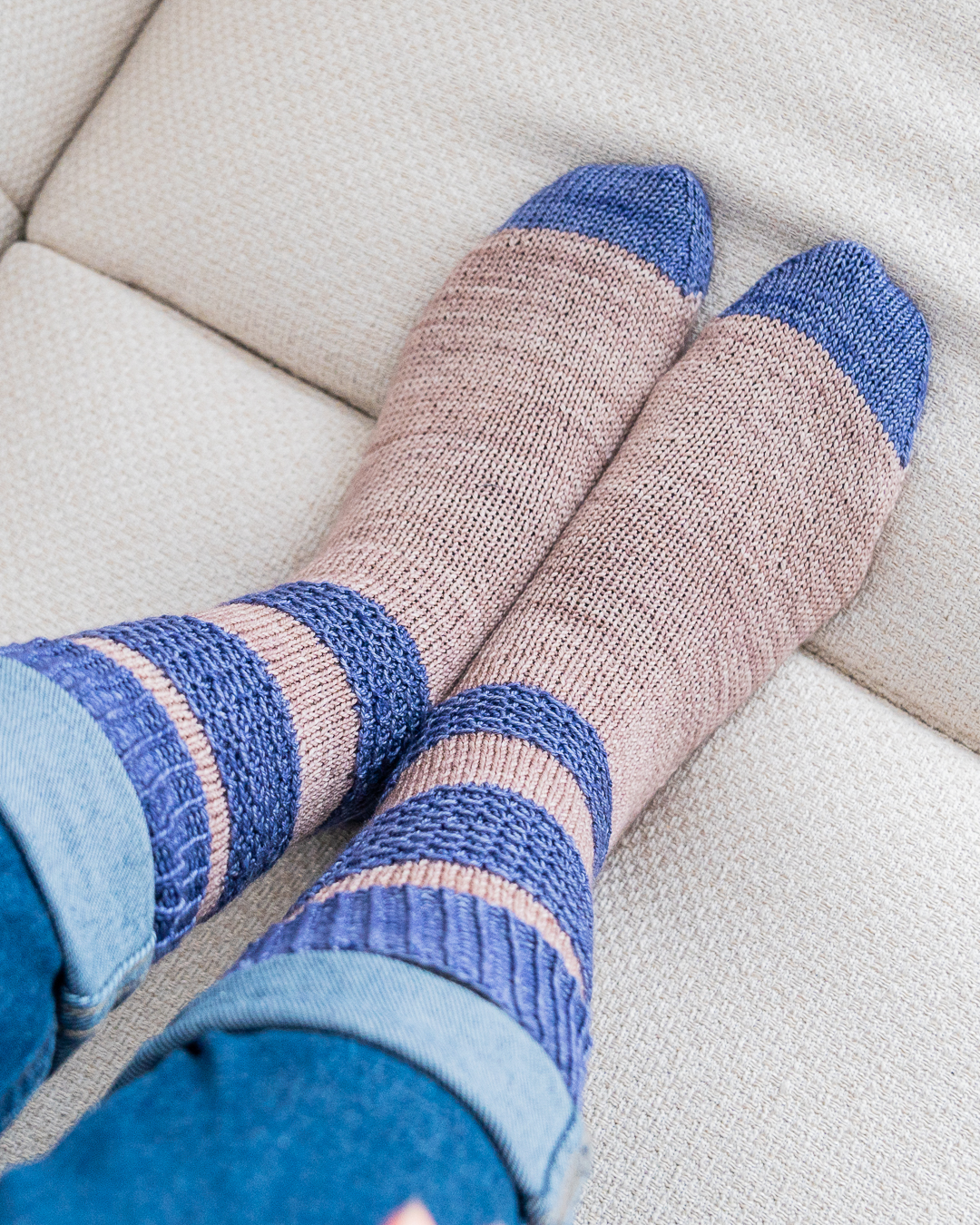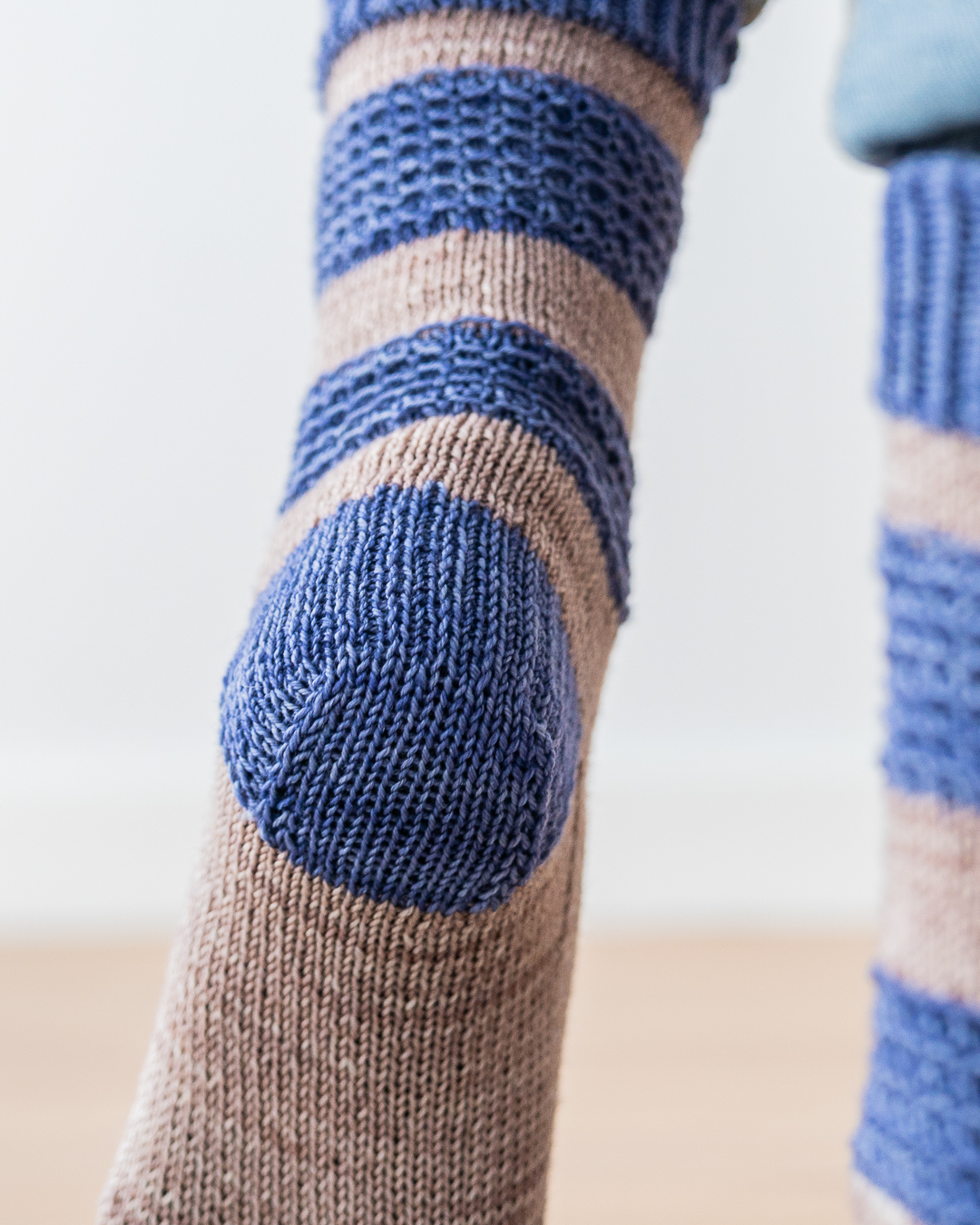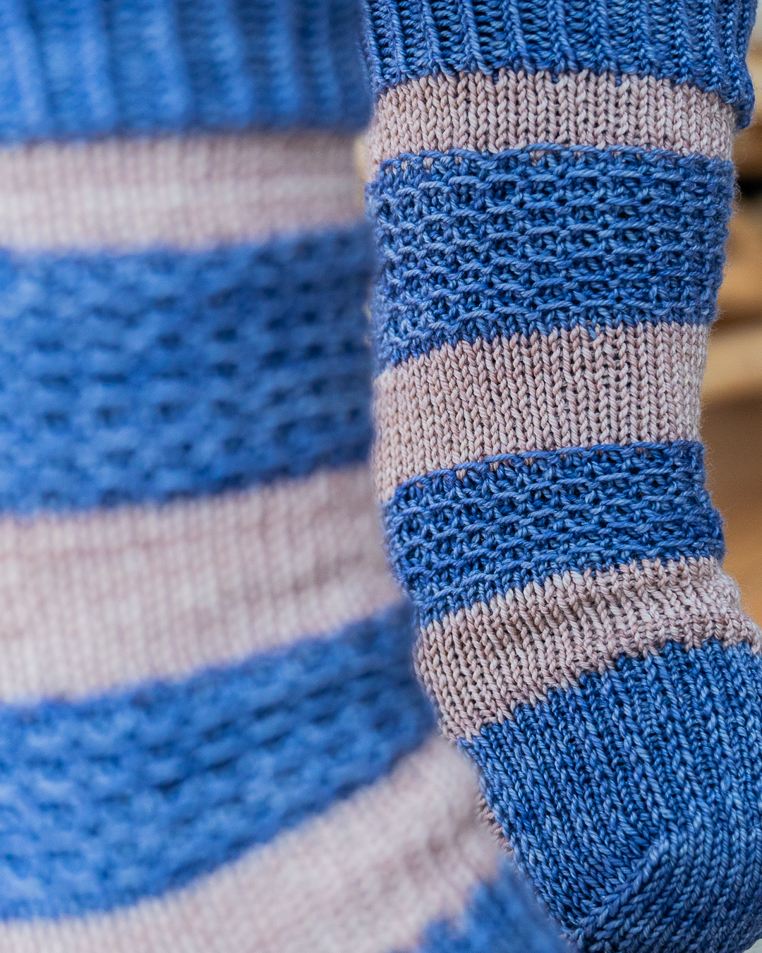Les chaussettes Diane sont tricotées de la manchette vers la pointe. Elles possèdent un joli motif en point rayon de miel glissé qui donne une belle texture sur la jambe de la chaussette. Elles peuvent être tricotées d’une seule couleur ou avec deux couleurs différentes.