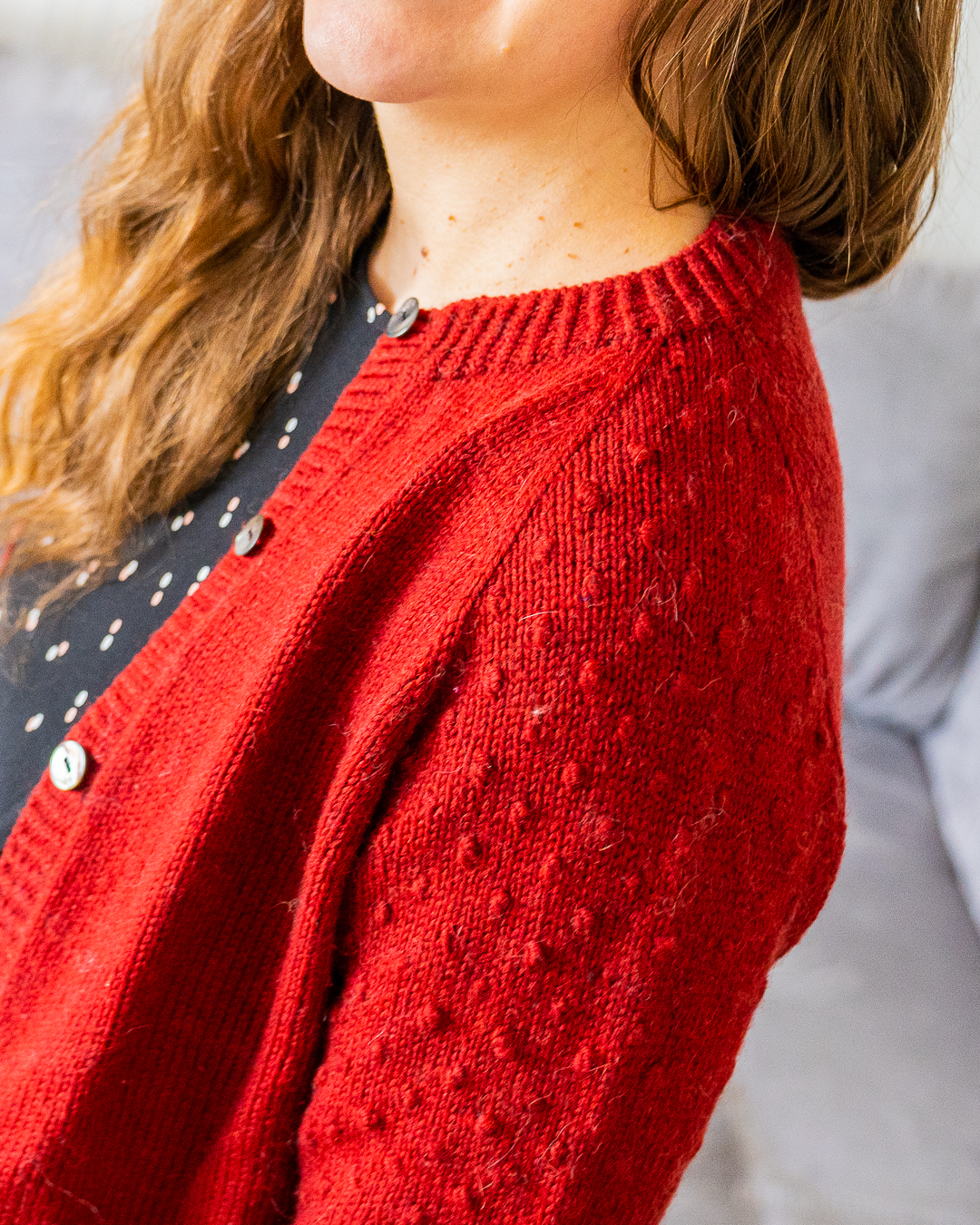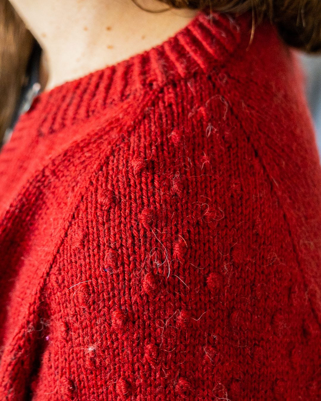 Le gilet France est un magnifique gilet raglan simple, féminin et élégant avec un très joli point pop-corn sur toutes les manches. Le gilet est tricoté du haut vers le bas en rond sans coutures ce qui le rend très agréable à tricoter.
