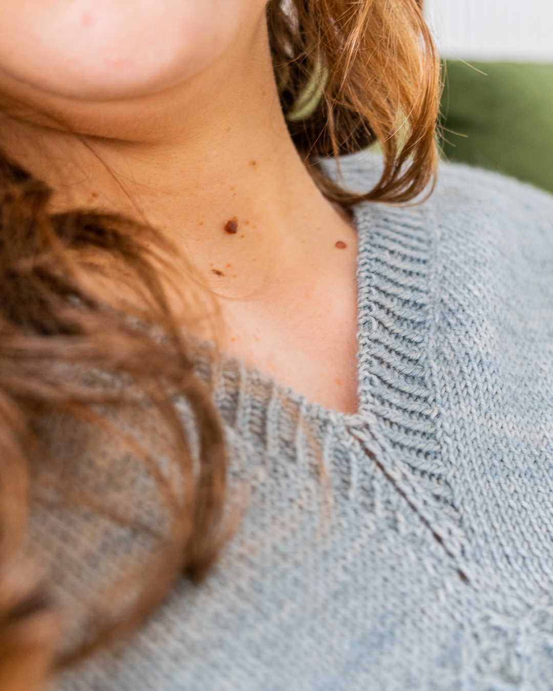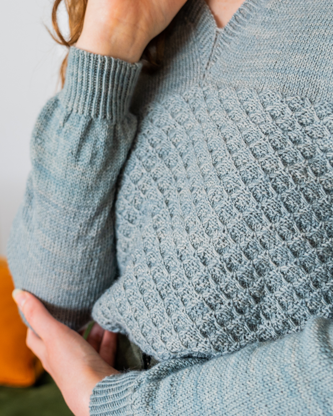 Le pull Madeleine est un très joli pull tricoté en top-down avec un col V et un sublime raglan (C’est si rare !). Tricoté avec une belle texture sur le corps qui représente les plafonds à caissons du palais de l’Hermitage à Saint-Petersbourg.