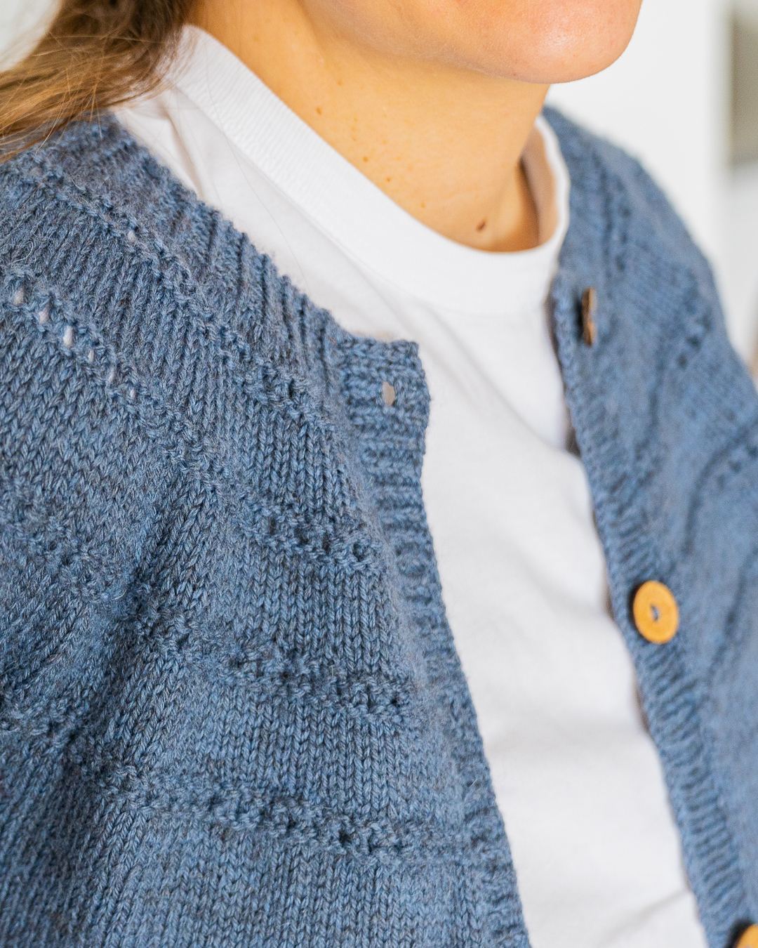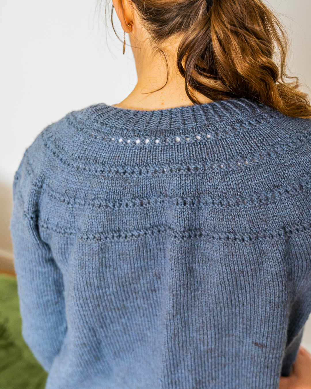 Le gilet Marielle est un gilet à empiècement arrondi avec un travail de dentelle ajourée simple sur tout l’empiècement. Tricoté en rond sans coutures, c’est un modèle simple et élégant qui fera le bonheur des triconautes de tout niveaux.