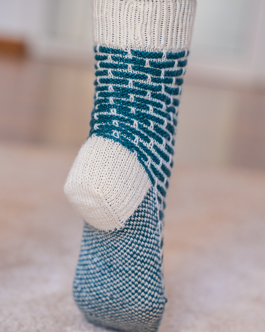 Les chaussettes Pauline revisitent le tricot avec un motif graphique en mosaïque qui attire tout de suite l’œil. L’association de couleurs et de textures en fait un modèle moderne et ludique à porter. Elles possèdent un talon à gousset double pour plus de confort et possèdent un motif en jacquard sur tout le pied.