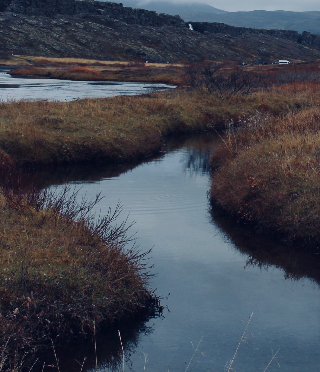 Je découvre les premiers paysages de l’Islande à travers le parc national de Þingvellir. Et j’ai l’impression de découvrir les origines de la Terre. Au coeur de cet espace, la faille immense du rift qui sépare deux plaques tectoniques : la plaque eurasiatique et nord-américaine. Je suis littéralement entre deux plaques de continents.